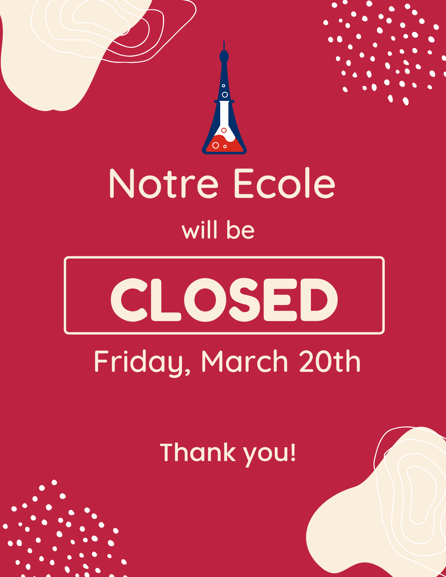 Notre École will apply the Japanese philosophy of O-soji. For approximately 15 minutes a day students will clean the classrooms and communal spaces around the school. O-soji provides opportunities to teach social skills and valuable life lessons through - respect and gratitude for people and property, becoming an independent, responsible person, and fostering a respectful environment.
